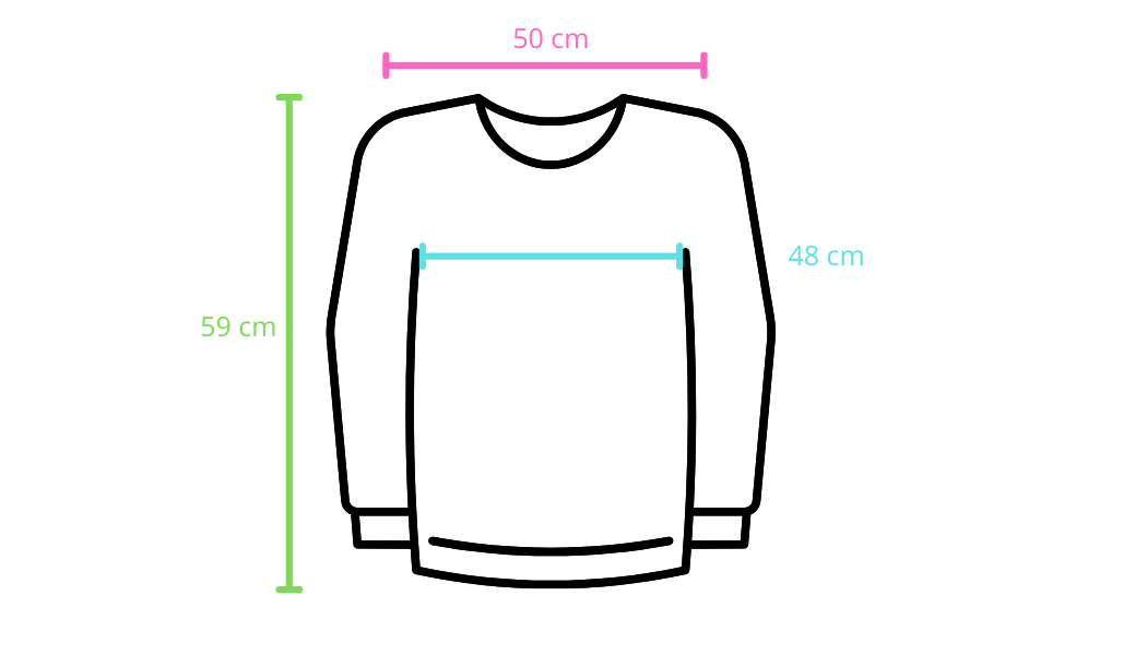 Mesures : épaules 50 cm / aisselles 48 cm / longueur 59 cm